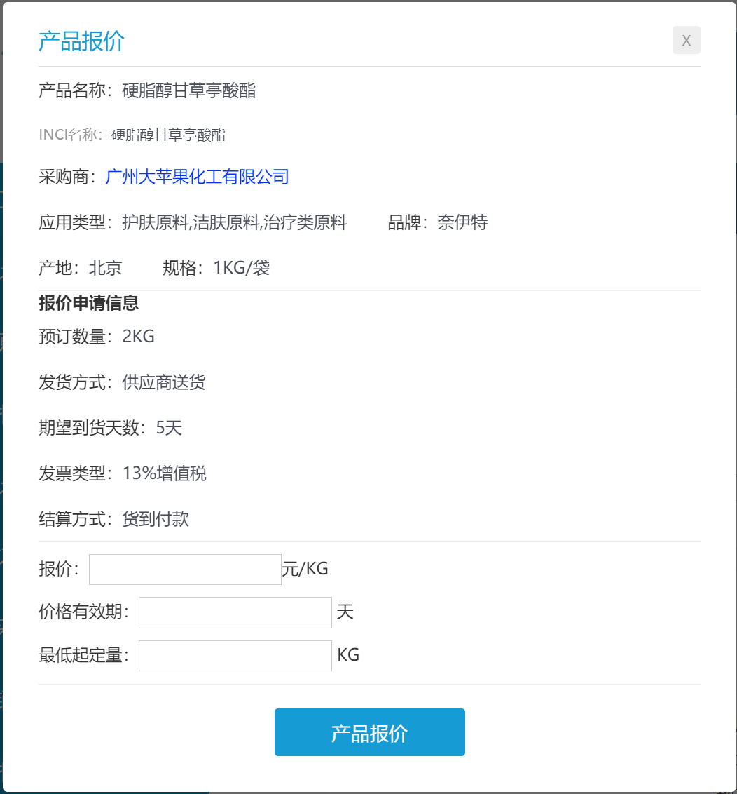 第二步:按提示填写并提交产品报价单